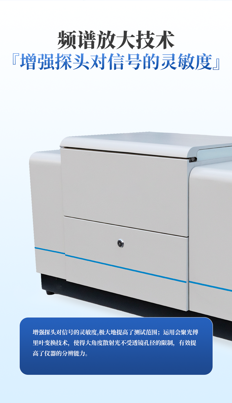 | 頻譜放大技術(shù) | 增強探頭對信號的靈敏度,極大地提高了測試范圍;運用會聚光傅里葉變換技術(shù),使得大角度散射光不受透鏡孔徑的限制,有效提高了儀器的分辨能力。 |