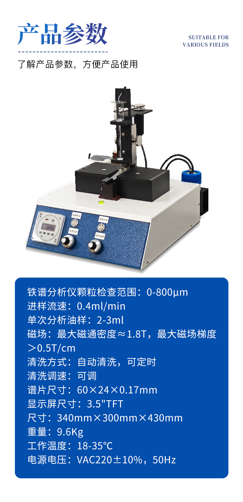 (1)鐵譜分析儀顆粒檢查范圍:0-800μm;