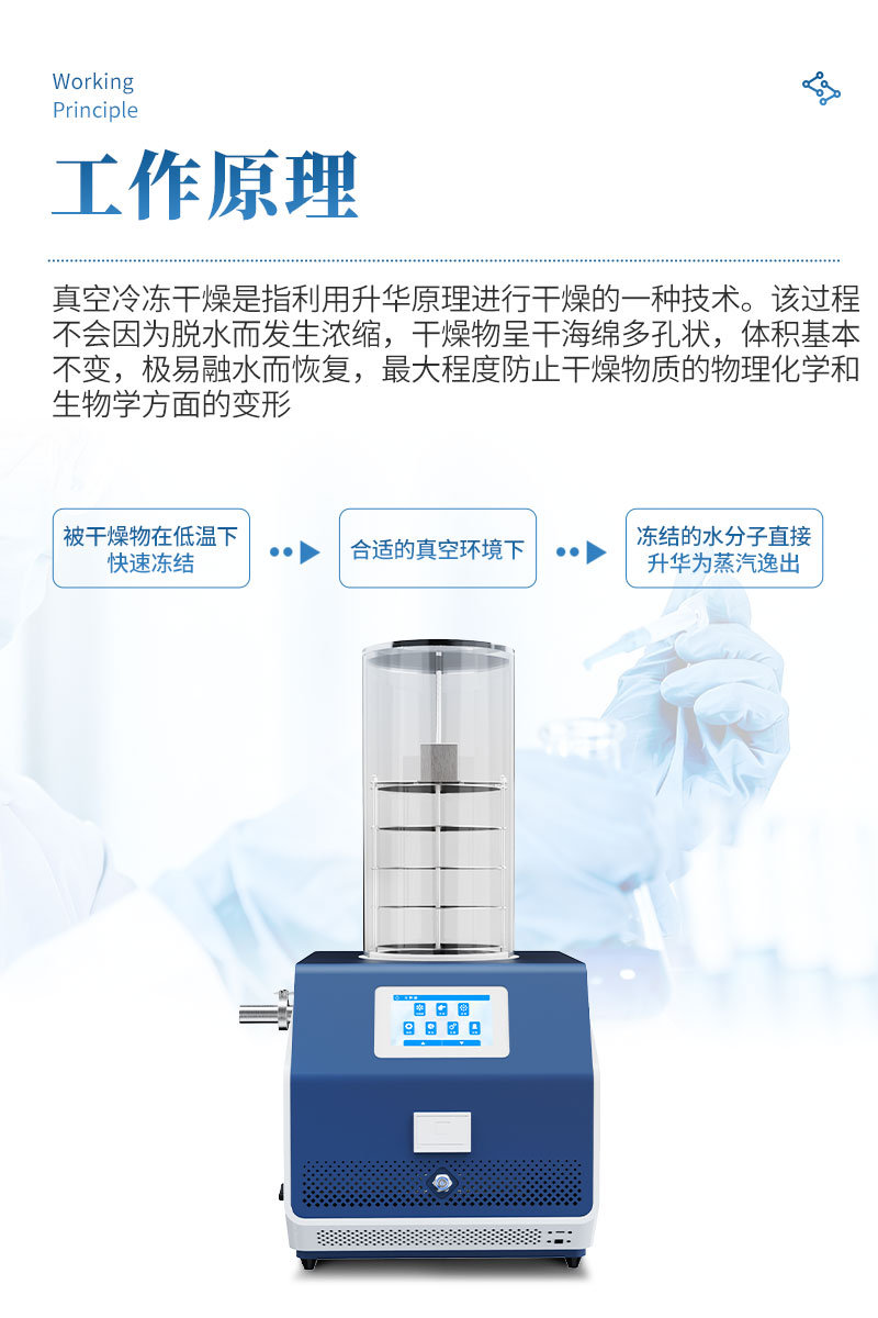 真空冷凍干燥是指利用升華原理進行干燥的一種技術,即被干燥物在低溫下快速凍結,然后在合適的真空環境下,使凍結的水分子直接升華為蒸汽逸出。該過程不會因為脫水而發生濃縮,干燥物呈干海綿多孔狀,體積基本不變,極易融水而恢復,**程度防止干燥物質的物理化學和生物學方面的變形。