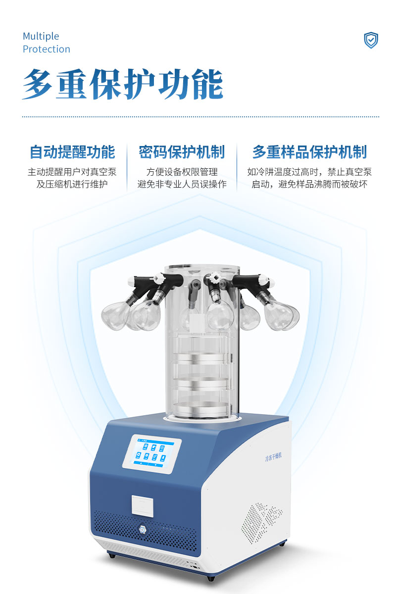 (6) 多重樣品保護機制,如冷阱溫度過高時,禁止真空泵啟動,避免樣品沸騰而被破壞。