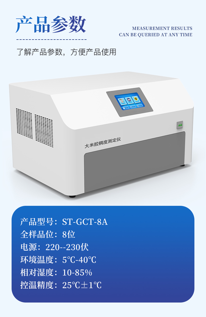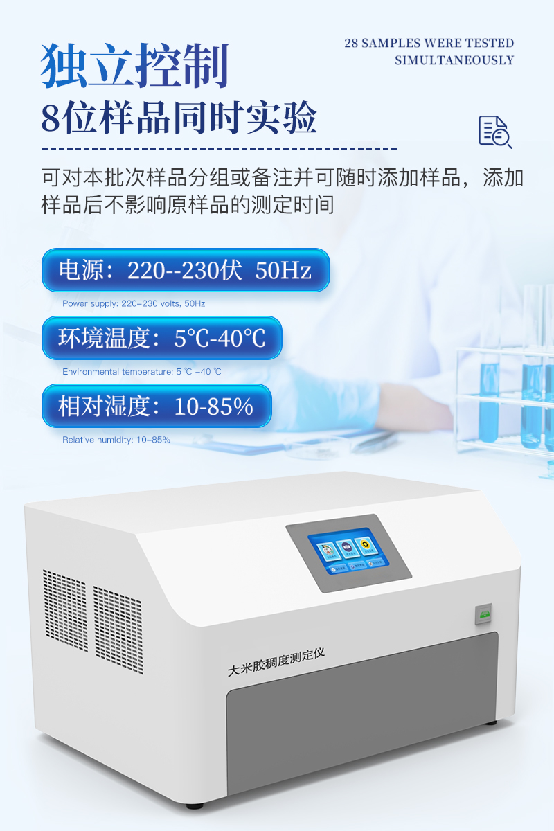 1、用途:適用于糧油檢測大米膠稠度的測量2、工作條件:2.1電源:220--230伏, 50Hz;環境溫度:5℃-40℃;相對濕度:10-85%3、技術指標要求★全樣品位:8位,★樣品位可獨立控制:每···