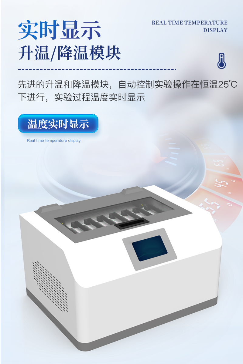 ★恒溫控制功能:先進的升溫和降溫模塊,自動控制實驗操作在恒溫25℃下進行,實驗過程溫度實時顯示。