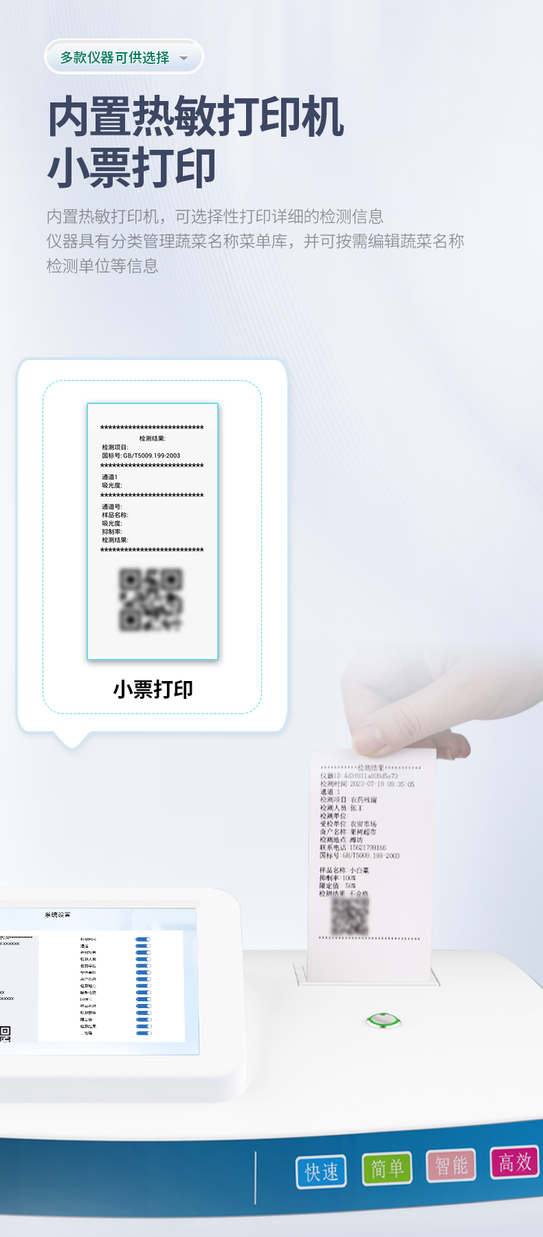 該儀器為三體儀器新研發一款農殘快速檢測儀,采用國標速測卡,使檢測速度更快,操作更加簡便。檢測標準:依據國家標準方法(GB/T5009.199-2003)以及世界衛生組織WHO、世界糧農組織FAO殘留農藥檢測標準、世界環境保護局EPA參照攝入量等要求來設計。