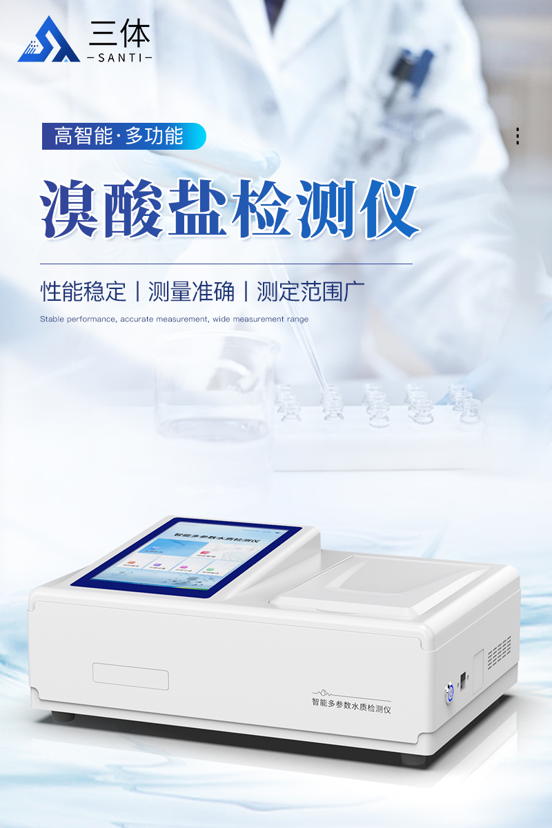 水質(zhì)溴酸鹽快速檢測(cè)儀是一款檢測(cè)快速檢測(cè)水體中溴酸鹽含量的儀器,適用于經(jīng)臭氧消毒后的礦泉水、凈化水、純凈水和各種包裝飲用水中溴酸鹽的定量檢測(cè)。